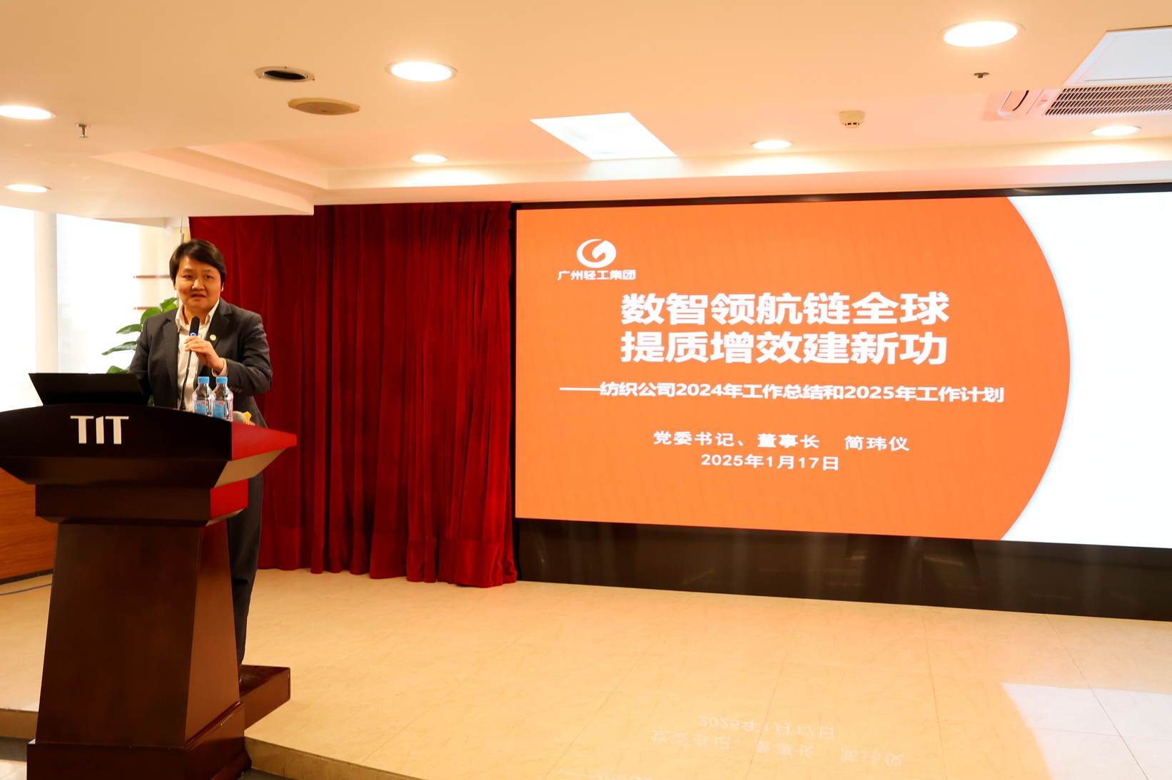 1月17日下午,紡織公司2025年工作會議在廣德大廈15樓禮堂召開。會議由公司副總經理關勇主持。廣州輕工集團副總經理陳家園出席并講話。