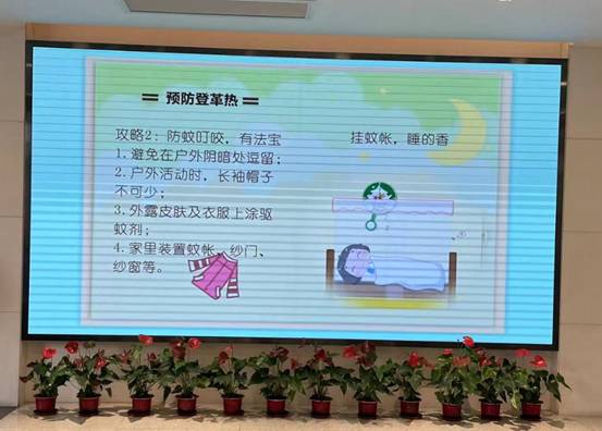 三是加大教育宣傳,共護(hù)健康家園。公司從7月底開(kāi)始在大堂宣傳屏幕循環(huán)播放“兩熱”的傳播方式、癥狀識(shí)別、預(yù)防措施等視頻,在飯?zhí)妹黠@部位張貼“兩熱”知識(shí)科普宣傳畫(huà)報(bào),為工勤人員配備驅(qū)蚊水,并對(duì)噴灑施藥操作人員開(kāi)展培訓(xùn),多渠道、多角度營(yíng)造群防群控的大環(huán)境,提升科學(xué)防控水平。