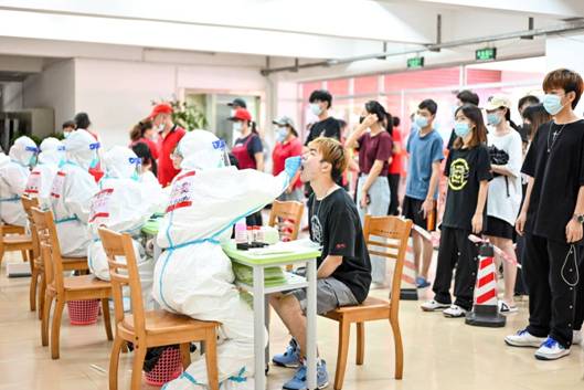 排隊、錄入信息、咽拭子采樣,在集中采樣點,師生員工全程佩戴口罩,自覺間隔一米,按10人一組分批分次有序前往采樣區(qū),開設10條通道,在現(xiàn)場醫(yī)護人員的引導下,有序進行核酸檢測的采樣。
