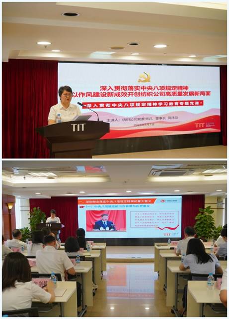 會(huì)上,黨委書(shū)記、董事長(zhǎng)簡(jiǎn)瑋儀作2025年度集體廉政談話,并圍繞深刻領(lǐng)會(huì)落實(shí)中央八項(xiàng)規(guī)定精神的重大意義、如何從嚴(yán)從實(shí)落實(shí)落細(xì)中央八項(xiàng)規(guī)定精神以及對(duì)紡織公司強(qiáng)化作風(fēng)建設(shè)推動(dòng)高質(zhì)量發(fā)展等三個(gè)方面講授了《深入貫徹落實(shí)中央八項(xiàng)規(guī)定精神 以作風(fēng)建設(shè)新成效開(kāi)創(chuàng)紡織公司高質(zhì)量發(fā)展新局面》專題黨課,進(jìn)一步推進(jìn)紡織公司深入貫徹中央八項(xiàng)規(guī)定精神學(xué)習(xí)教育走深走實(shí)。在作2025年度集體廉政談話時(shí),她強(qiáng)調(diào)要始終保持清醒、增強(qiáng)廉潔自律意識(shí),筑牢拒腐防變的思想防線,不辜負(fù)組織的信任與重托,為紡織的持續(xù)健康發(fā)展提供堅(jiān)強(qiáng)的紀(jì)律保障:一是提高政治站位,要把旗幟鮮明講政治作為根本要求;二是堅(jiān)持守正創(chuàng)新,要在推定企業(yè)改革發(fā)展上積極作為;三是認(rèn)真履職盡責(zé),要在守住風(fēng)險(xiǎn)底線紅線上彰顯擔(dān)當(dāng);四是壓緊壓實(shí)責(zé)任,要在凝聚管黨治黨合力上作出表率;五是強(qiáng)化作風(fēng)建設(shè),要以優(yōu)良作風(fēng)展現(xiàn)國(guó)企干部新形象。在講授專題黨課時(shí),她指出面對(duì)新時(shí)代新任務(wù)新要求,要以永遠(yuǎn)在路上的執(zhí)著,用更高的標(biāo)準(zhǔn)、更嚴(yán)的要求持續(xù)加強(qiáng)作風(fēng)建設(shè),把作風(fēng)建設(shè)與黨的建設(shè)各項(xiàng)工作緊密結(jié)合起來(lái),與推進(jìn)改革發(fā)展穩(wěn)定各項(xiàng)任務(wù)緊密結(jié)合起來(lái),以刀刃向內(nèi)的勇氣抓作風(fēng),以久久為功的韌勁促發(fā)展,把作風(fēng)建設(shè)的成果轉(zhuǎn)化為干事創(chuàng)業(yè)的強(qiáng)大動(dòng)能,奮力譜寫(xiě)紡織公司高質(zhì)量發(fā)展新篇章。